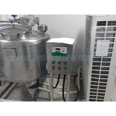 主要由罐體、攪拌器、制冷機組、電氣控制等幾部分組成。罐體采用雙層不銹鋼制成(SUS304或可根據(jù)客戶要求定制),經(jīng)精密拋光處理,污垢不易積存,易清洗耐腐蝕。在內(nèi)外罐體之間采用了聚胺酯硬質(zhì)泡沫板,該材料具有導(dǎo)熱系數(shù)低、比重輕、強度高、吸水率低的保溫層,保溫性能好。本產(chǎn)品設(shè)計、制造技術(shù)先進、性能可靠,冷卻、保溫性能和衛(wèi)生標(biāo)準(zhǔn)均符合國際先進水平。