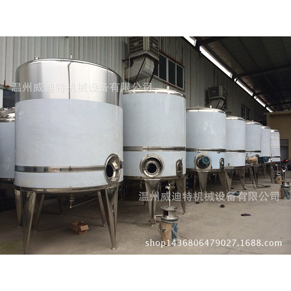 調(diào)配罐又名拌料缸、混料缸,有節(jié)能、耐腐蝕、生產(chǎn)能力強、清洗方便、結構簡單等優(yōu)點,主要用于乳品和食糖及其它元素和各種藥物再配合后進行攪拌均勻作用,是乳品、飲料、制藥廠不可缺少的設備。采用材質(zhì)為SUS304或316不銹鋼。